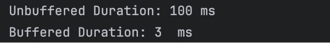 일반적인 상황에서는 Buffered I/O Stream이 거의 대부분 더 좋은 성능을 보여줍니다. 하지만, 버퍼를 위한 추가적인 메모리를 사용하고 버퍼의 크기가 작으면 더 많이 커널 영역에 접근하므로 제한된 상황에서는 메모리 사용량과 실제 사용 케이스를 고려할 필요는 있습니다.