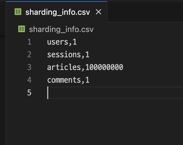 이러한 값들을 sharding_info.csv 에 기록하고 메모리 위에도 Map 구조로 가지고 있습니다.